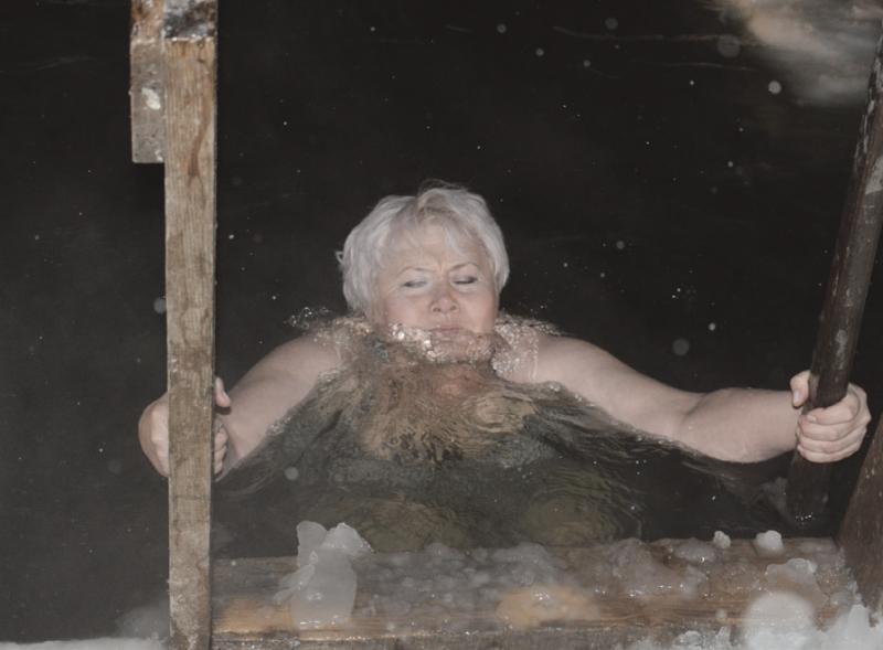 Впрочем, в каждом правиле всегда есть свои исключения. Евгений Алексеев со своей мамой Алевтиной Юрьевной казались абсолютно спокойными. Для них – это обдуманный, хорошо взвешенный шаг. Мужчина – ледяной воды не боится, до купания в проруби закалялся – обливался, женщина – человек верующий. Такое же самообладание демонстрируют немногочисленные дети. Неизвестный мальчишка лет шести-семи от роду стремительно подведен к купели, погружен в воду, помещен в автомобиль. Похоже, парень просто не успел понять, что произошло. Другое дело Виктория Сирко, тринадцатилетняя девочка ныряет в прорубь шестой раз подряд.